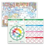 両面使える!A3サイズ 時計の読み方&世界地図 お風呂ポスター/時計 時刻 時分 時 分 読み方 知育玩具 遊び 練習 学習 お風呂ポスター |