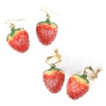両耳用 イチゴ 苺 ピアス イヤリング レディース オシャレ カワイイ ドロップ ストロベリー 果物 食玩 リアル カフス ねじ式 ベリー ピアス |