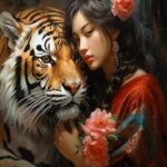 動物 数字による新しいペイント 大人向け 子供 数字に絵を,虎と女,キャンバスに描く フィギュア ナンバーペインティング ホームデコレーション,40x50cm 无框 |