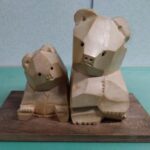 北海道 民芸 工芸 大和彫 台座付 大和正幸 ガラス目 白カット 親子熊 郷土玩具 木彫 熊 民藝 美術品 置物 飾り インテリア アンティーク ④ |