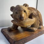 北海道 木彫り熊 鮭をくわえた熊伝統工芸 民芸品 置物 天然木 彫刻台座付き 熊の木彫り 工芸彫刻 木彫工芸品 |