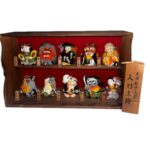 大津絵十人衆人形土鈴 10体揃 焼杉木 製飾棚付滋賀郷土民芸伝統民画民藝工芸縁 起物魔除け置物骨董うぶ品 |