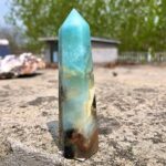 天然カリブ海方解石クリスタル六角杖シングルポイントスカイブルー石タワー装飾用 ERZNGZDI (Size : 200-250g) |