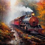 数字による新しいペイント 大人向け 子供 数字に絵を,森の中のレトロな蒸気機関車,キャンバスに描く フィギュア ナンバーペインティング ホームデコレーション,40x50cm 带框 |