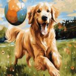 数字による新しいペイント 大人向け 子供 数字に絵を,芝生の上でボールで遊ぶゴールデンレトリバー犬,キャンバスに描く フィギュア ナンバーペインティング ホームデコレーション,40x50cm 无框 |