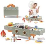 木製キッズグリルプレイセット プレイキッチンアクセサリー付き | 3~5歳の幼児向けごっこ遊びおもちゃ クッキングBBQプレイフードトイ 3歳以上の男の子と女の子向け、子供への誕生日ギフト |