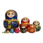 DuskHaven 10個セット マトリョーシカ 木製 手作り 入れ子人形 伝統工芸 民芸品 積み重ね 玩具 家庭装飾 誕生日プレゼント 子供向けに適用, 青 |