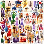 猫アートテーマの防水ステッカー50枚 |