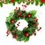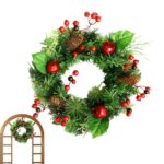 玄関ドア用クリスマスリース、松ぼっくりクリスマスリース | クリスマス ドア リース人工松葉リース玄関ドア装飾 – レッドベリークラスターリース人工松葉ドアリース、季節の家の装飾、冬のクリスマスパーティー用品 |