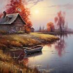 田舎の家 数字による新しいペイント 大人向け 子供 数字に絵を,夕焼けの風景,キャンバスに描く フィギュア ナンバーペインティング ホームデコレーション,40x50cm 无框 |