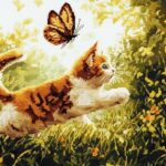 蝶を追いかける動物猫 数字による新しいペイント 大人向け 子供 数字に絵を,草,キャンバスに描く フィギュア ナンバーペインティング ホームデコレーション,40x50cm 带框 |