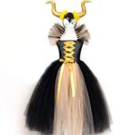 邪悪な女王の女の子仮装チュチュ頭飾り翼のある子孫悪役コスプレハロウィン子供黒ドレス お祝いドレスアップ (Color : Khaki, Size : 10 12y) |