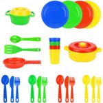 FLORMOON(フロムーン) プレイディッシュセット – 丈夫なごっこ遊びクッキングトイ 27個 – 超頑丈 BPAフリー 食品安全 フタル酸フリー – 子供用食器キッチンおもちゃ 男の子と女の子向け 2歳以上 |