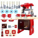FlyCreat ままごと遊び キッチンセット台所 ままごとセット ままごとおもちゃ ごっこ遊び クッキングトイ 知育玩具 おもちゃ 組立式 鍋 お皿 フライパン フライ返し 食器 調理器具付 キッズ 子供用 女の子 男の子 おもちゃ 誕生日 クリスマス プレゼント (キッチン(レッド)) |