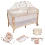 GU MODE ベビーベッド 多機能プレイヤード 折りたたみ オムツ交換台 ゆりかご 添い寝 キャスター付き クーファン 持ち運び便利 組立簡単 収納スペース 新生児から使える 出産祝い (ベージュ蚊帳付きタイプ, 長さ125cm 奥行75cm 高さ77cm) |