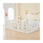 GU MODE ベビーサークル 置くだけ ベビーゲート ベビーフェンス 実用新案登録(固定パーツは別売り)7way仕様フェンス ペット用可能 ドアロック付き 安全設計 滑り止め 簡単設置 出産祝い(内寸180cmx200cmx68cm)【ホワイト】 |