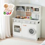 Harper & Bright Designs おままごとキッチン 木製 光る/音が鳴る 付属品付き 冷蔵庫&食洗機付き ごっこ遊び 知育玩具 収納棚 誕生日プレゼント クリスマス 3歳以上 女の子 男の子 キッズ 室内遊具 ホワイト&グレー |