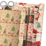 Hianjoo 包装紙 ロール クリスマス ラッピングペーパー 大判 おしゃれ クラフト紙 ギフト包装 ラッピング用品 梱包紙 大きい クリスマスツリー/雪の結晶/麋鹿柄 (3枚入り ロール 43×300cm) |