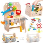 HIWO モンテッソーリ 木製工具おもちゃ 2in1 組み立て おもちゃ 引き出し収納 3-6歳 知育玩具 STEM教育 大工さんごっこ 子供 誕生日 クリスマス プレゼント 安全認証 |