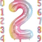 HIYEAR 誕生日 飾り付け 数字 バルーン 大きい 40インチ 90cm 虹色 アルミ風船記念日 お祝い ハッピーバースデー (2,虹色) |