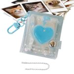 Jvjggag フォトアルバムキーホルダー ハートデザインカードコレクションブック | 24ポケット付きの光沢のあるクリアピクチャーアルバムキーチェーン – 2インチの写真学校旅行ディスプレイストレージ用 |