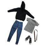 Kesoto 1/6スケール メンズ衣装 12インチ男性フィギュア用 黒いパーカー Tシャツ ジーンズ ベルト キャンバスシューズ |