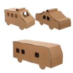 KOCKSHION 段ボール製組み立てキット 子供向け乗り物おもちゃセット 警察車 救急車 バス模型 組み立てパズル 学習用ペーパークラフト Diyアート遊び 3個入り |
