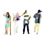 Qialexicon 1/64スケールジオラマフィギュア4体、キャラクターキャンプフィギュア、手描きミニチュアシーン、男の子女の子向け、子供ギフト |