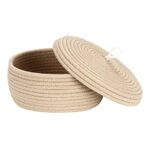 Sea Team 収納バスケット 収納ボックス 収納かご バスケット ふたつき コットンロープバスケット 化粧品収納バスケット 小物入れ 靴下 パンツ 収納 装飾用 多用途 編み込み かわいい オフィス収納 部屋収納 円形(33x33x23cm カーキ) |