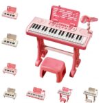 ShineLuxe 子供用電子キーボード グランドピアノ マイクと譜面台付き 24/37鍵 知育玩具 多機能楽器 男の子と女の子向け 1~6歳 誕生日やホリデーギフト (ギフトボックス37キーピンク高級バージョンテーブル脚) |