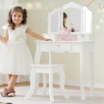 SOFTSEA おままごとドレッサー 三面鏡 子供用 ドレッサー 木製 スツール付き 引き出し メイク台 鏡台 コスメ収納 化粧台 角丸設計 プレゼント クリスマス お誕生日 ごっこ遊び 姫系 おしゃれ (ホワイト) |
