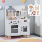 SOFTSEA おままごと キッチン 木製 光る&音が出る ごっこ遊び 台所セット 冷蔵庫・電子レンジ・ウォーターサーバー付き 知育玩具 誕生日プレゼント 3歳以上 女の子 男の子 おしゃれ 大型 収納付き ごっこキッチン クリスマスギフト (ホワイト+グレー) |