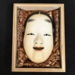 t7L110 面打師 梅木草屯 小面 能面 在銘 刻印 共箱 面袋付 若女 在銘 彫刻 伝統工芸品 飾り 彫刻 骨董 民芸 和風 古道具 能楽 |