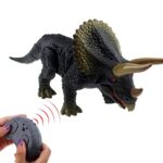 Tipmant RC恐竜リモートコントロール動物トリケラトプスカー電子玩具サウンド、ウォーキングレッグ、グローイングアイズキッズギフト |