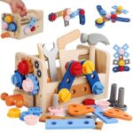 TYORORO 大工 おもちゃ ままごと ごっこ遊び 大工さん DIY 組み立てタイプ ねじねじ ハンマー ドライバー 木槌付き おもちゃ ごっこ遊び 木製ツールボックス 多機能 モンテッソーリ 玩具 知育玩具 教材 男の子 女の子 新年 誕生日 お祝い クリスマス プレゼント 贈り物 (道具かご—青い) |