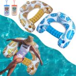 Weeupolfun 浮き輪 フロート 大人用 プール フロート椅子 背もたれとドリンクホルダーが 付いているので 浮き輪ベッド 熱帯 雨林のテーマ スイミング フローティング チェア夏やビーチパーティーに (オレンジ,青です) |