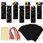 WEFOO アニマルスクラッチブックマーク 70個 子供用 パーティー記念品 レインボーアートペーパー DIYクラフト用品 教室の景品 誕生日パーティーの記念品 バルクトイ 木製スタイラス 70個 カラフルリボン |