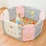 WEIMALL ベビーサークル 折りたたみ 小さめ 10枚セット 116.5cm×116.5cm おもちゃパネル付き ドアロック付き 折りたたみ 簡単組立 出産祝い プレゼント(ピンク×グレー)GAD009PKGY |