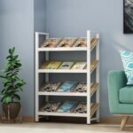 Wetsfgdgパンフレットスタンド パンフレットラック様々なシーンに適応し、配置位置を自由に調整できます、児童書や絵本を置くのに適しており、幼稚園や児童館など、読書への意欲を育みます80*30*120cm/4段白いフレーム+ ライトウォルナット |