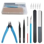 WMYCONGCONG プラモデル工具 9点セット 入門ツール セット 初心者向きモデラーズナイフ(5個 替え刃付き)薄刃ニッパー ヤスリ 精密ピンセット 両面ポリッシュバー 収納ケース付き |