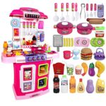 Xyanzi キッズトイ 幼児用キッチンクックプレイセット クッキングトイ オーブン、電子レンジ、調理器具、キッズクッキングごっこ遊びセット ライトとサウンド効果 (39ピース) ピンク |
