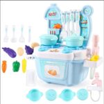 Xyanzi キッズトイ キッズキッチントイ クッキングシミュレーション ドレスアップゲーム ミニキッチン プレイフード 子供用テーブルウェア キッチンウェアセット 男の子と女の子 (16ピース) ブルー |