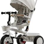 YAKINO子供用三輪車 手押し棒付き 折りたたみ三輪車 1-3歳までのお子様 超軽量、調節可能、乗用おもちゃ、幼児に適した、敏感なブレーキ、双方向シート、快適な衝動吸収、組み立てが簡単、キッズバイクお誕生日プレゼント、おもちゃプレート付き (白牡丹) |
