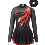 [Aislor] 女の子用の子供向け長袖のきらきらレンガストーン入りのローラーフィギュアスケートウェア バレエチュチュドレスとヘアバンドセット 赤 12 |