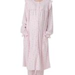 [ANGELIEBE エンジェリーベ] マタニティ パジャマ 前開き 綿 混 やわらか スムース チェリー プリント フリル 長袖 授乳 産前 産後 LL ピンク |