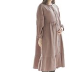 [ANGELIEBE エンジェリーベ] マタニティ パジャマ 授乳服 前開き ぷくぷく ダブルガーゼ 裾ティアード 3WAY ワンピース & 産後 も使える レギンス セット 長袖 フリー モカブラウン |