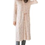 [ANGELIEBE エンジェリーベ] マタニティ パジャマ 防汚加工 2WAY 綿100% 前開き 長袖 ネグリジェ ワンピース ルームウェア 産前 産後 L ブラウン |