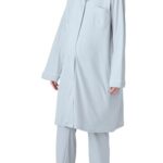 [ANGELIEBE エンジェリーベ] マタニティ 前開き 長袖 パジャマ 綿混 やわらか スムース シャツ パンツ 上下セット 入院着 妊婦 出産準備 産前 産後 S サックス |