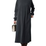 [ANGELIEBE エンジェリーベ] マタニティ ワンピース 授乳服 ストレッチ リブ Aライン 長袖 産前 産後 ポケット付き L カーキ ロング丈 |