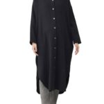 [ANGELIEBE エンジェリーベ] マタニティ パジャマ 授乳服 前開き ぷくぷく ダブルガーゼ Vネック ワンピ & 産前 産後 使える レギンス 長袖 入院 フリー ブラック |